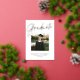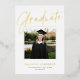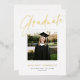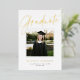 Cette faire-part chic de graduation présente un arrière - plan blanc classique (personnalisable), une typographie élégante et une photo carré. Le magnifique script de calligraphie "Graduate" et le nom de votre élève sont tous deux en feuille d'or surélevée! L'école fréquentée et l'école future est imprimée à plat en gris. Un design chic et élégant. Vous pouvez customiser encore plus ce design en ajoutant une autre photo ou du texte supplémentaire à l'arrière-plan. Le pétrole est disponible en or, argent ou or rose et brille absolument ! Sélectionnez de véritables annonces de graduation de feuille pour ajouter le facteur wow!
