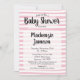Une invitation amusante au baby shower rayé rose et blanc. Parfait pour les baby showers filles.