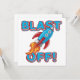 Notre design Blast Off est un design génial pour les enfants de tous âges qui aiment l'espace et les navires de roquettes, dispose d'un navire de roquette bleu et rouge avec des gaz d'échappement flamboyants et texte qui dit Blast Off! Blast Off rocket ship T-shirts, bibs, couvertures, cartes, autocollants, tasses, sacs, coussins, horloges murales, et bien plus encore!