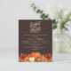 Un arrière - plan brun foncé. Décoré de fleurs citrouilles et orange et jaune. Personnalisez et ajoutez les détails de la fête. Texte : Grateful and Blessed. 1 feuille = 1 invite imprimé bord à bord.