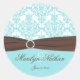 Bleu Aqua, Brown, Sticker Mariage damassé Blanc