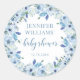 Elégant bleu aquarelle fleurie bébé autocollants ronds de douche garçon.