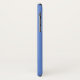 Élégant coque iPhone X fait en bleu avec des graphiques d'un grand tournesol jaune et marron qui regarde sur le côté gauche. Personnalisez le texte jaune pour vous-même ou comme une excellente idée cadeau.