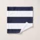 Les serviettes de bain sont recouvertes de rayures bleues blanches dessinées par des Deluxephotos.