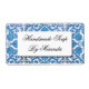 Étiquettes de conserverie, de savon ou d'artisanat sur mesure avec un joli script sur l'art de la mosaïque florale de Delft retouché et reproduit à partir d'une véritable tuile antique. Il présente une atmosphère peinte à la main et présente un motif floral bleu et blanc classique avec des fleurs de maïs. Cliquez sur Customiser pour modifier les polices, le dimensionnement et même enregistrer votre conception pour plus tard.