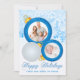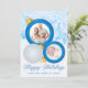 Bleu, Blanc Ornements Joyeux Carte photo de vacanc