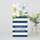 Fleurs rayures bleu foncé cérémonie moderne florale mariage et programme de fête avec élégantes fleurs blanches et bleues deux tons avec feuilles verts sur un motif rayé en rayures bleu marine et blanc. Cette élégante modèle mariage contemporaine est entièrement personnalisable et est idéale pour un mariage de printemps ou d'été.