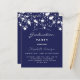 Une invitation glamour pour une fête de remise de diplômes de 20xx (ou n'importe quelle année) pour lui et elle. Un arrière - plan bleu marine décoré d'étoiles blanches. Personnalisez et ajoutez un nom et des détails du parti. Le texte Graduation et le nom sont écrits avec un script de style à la main moderne. Texte de couleur blanche. Retour : arrière - plan bleu marine et étoiles blanches.