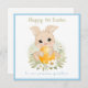 Le lapin de Pâques le plus mignon avec un oeuf de Pâques en jaune et bleu première carte de Pâques pour bébé garçon. Personnalisez facilement cette carte de Pâques avec votre propre texte. - Kate Eden Art.