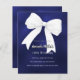 Pour un 18e (ou n'importe quel âge) Un arrière - plan bleu marine, de couleur inégale, décoré d'un grand arc blanc. Personnalisez et ajoutez un nom et des détails du parti. 1 feuille = 1 invite imprimé bord à bord.