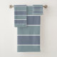 Une palette de couleurs cool bleu et vert poussiéreux sur de larges bandes horizontales avec de fines rayures blanches donne un style minimaliste pour votre bain. Des décorations coordonnées sont disponibles.