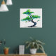 illustration traditionnelle d'aquarelle d'un bonsaï en vert et bleu comme imprimé d'affiche