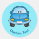Voiture de dessin animé bleu souriant. Couleur arrière - plan personnalisée. Texte personnalisé.