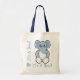Sweet hôpital sac de nuit pour maman d'être, avec des graphiques d'un mignon éléphant de dessin animé bleu. Un coeur bleu en bas à gauche, avec un texte bleu, de chaque côté lisant C'est un garçon ! Grand sac fourre-tout réutilisable qui fait un grand sac cadeau pour les baby showers.