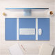 Ce design sportif présente deux épais rayures verticales blanches contre un arrière - plan bleu clair.