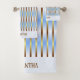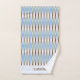 Une élégante serviette de bain verticale à rayures dorées pour une salle de bain élégante. Serviette de bain bleu clair, blanc et or sertie d'une bordure monogrammée. Remplacez le nom.