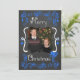Un tableau de bord arrière - plan avec de beaux rouleaux et des étoiles de texte bleu et blanc brillant qui dit "Joyeux Noël" sur le devant et "Que tous vos jours soient joyeux et lumineux" sur le dos. Cette belle carte photo de Noël customisée a plusieurs ornements étoiles, et un oiseau dans une conception de nid et des zones que vous pouvez facilement ajouter vos noms, l'année en cours, et la photo!