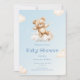 Apportez un charme rêveur à votre événement avec cette Invitation Baby shower Bébé de Blue Cloud Bear. Doté d'un ours en peluche à l'aquarelle douce flottant sur des nuages moelleux entourés d'étoiles, cette invitation évoque une atmosphère paisible et nocturne. Le design ludique mais apaisant est idéal pour célébrer l'arrivée d'un bébé garçon avec un thème de ciel, nuage, ou l'histoire du coucher. Parfait pour les baby showers neutres ou spécifiques au genre qui embrassent des pastels doux et des illustrations de caractère câliné. Parfait pour : Baby Boy Showers Sky or Cloud Thématiques Célébrations de nuit ou de rêve Baby showers Parents de la première fois Célébrations