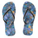 Feuilles à tongs avec un motif en mosaïque géométrique en bleu violet et une variété d'autres couleurs.