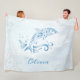 Restez au chaud pendant les nuits fraîches d'automne et d'hiver avec une couverture en polaire personnalisée Dolphin bleu. Le design de la couverture comprend un dauphin métallique vibrant contre un paysage marin feutré orné d'élégants rouleaux avec une zone à personnaliser avec votre nom. Autres cadeaux disponibles avec ce design ainsi qu'une variété de couleurs.