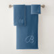 Élégante impression de bleu dégradé. En bas à droite il y a un monogramme. L'initiale peut être facilement customisée, repositionnée ou retirée. La police, la taille et la couleur du texte peuvent également être ajustées. Vous pouvez remplacer l'initiale par un nom si vous le souhaitez, mais la taille du texte peut alors devoir être réduite et repositionnée sur chacun des trois produits. Ce design existe en cinq versions couleur : rose, bleu, turquoise, argent et or.