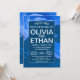 Cette invitation marine moderne bleu est parfaite pour une croisière ou un fiançailles sur la plage, mariage après la fête, la retraite, la remise des diplômes ou tout événement heureux. Le design simple présente un paysage marin magnifique, des vagues, des animaux de mer et des récifs colorés.