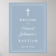 Ce panneau d'accueil moderne et élégant bordé bleu poussiéreux baptême peut être personnalisé avec vos informations. Conçu par Thisisnotme©