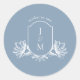 Bleu Dusty Mariage Crest Étiquettes ronds