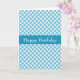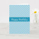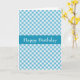 Carte d'anniversaire personnalisable avec beau motif bleu en vichy. ©Janet Palaggi