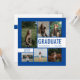 La carte de faire-part de remise de diplômes élégante et l'invitation de la fête comportent six photos senior avec "GRADUATE" comme grand point focal. Personnalisez le texte personnalisé moderne avec le nom de votre élève, l'école et l'année de classe. Cette carte recto verso comprend le libellé de l'invitation de la partie de graduation au verso. Customisez les couleurs du cadre d'image et des boîtes à l'avant et les boîtes à l'arrière pour correspondre aux couleurs de votre école ou coordonner avec la photographie. Disponible dans les combinaisons de couleurs les plus populaires et les plus courantes de l'école - vert/jaune, rouge/jaune, rouge/or, bleu/jaune, bleu/jaune, bleu/or, noir/or, noir/jaune, violet/jaune, rouge/argent et rouge/noir. Produits correspondants et autres couleurs disponibles.