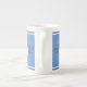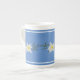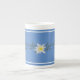 Tasse de porcelaine d'os d'inspiration européenne faite avec une bande bleue et blanche, autour de la tasse et des graphiques d'edelweiss blanc, à travers le milieu. Super idée cadeau. Une théière correspondante est disponible.