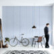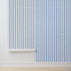 Papier peint rayé bleu et blanc.