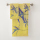 Sur cet ensemble de serviette, le motif sensible et original du feuille bleu-foncé sur un arrière - plan jaune rustique a le regard du Vieux Monde, tissu de Français de pays. Le motif a été fait à partir d'une photographie originale de feuille de pétunia.