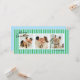 Petites bandes verticales bleu et vert aqua donnent à cette carte de vacances photo une ambiance moderne et chic avec des polices classiques et un long message customisé pour les amis et la famille.