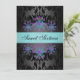 Cet Elégant Sweet sixteen personnalisable Invitation d'anniversaire présente des flocons de neige bleus et violets sur un arrière - plan noir damassé. Customisez-le en ajoutant vos détails dans la couleur et la police de votre choix !