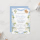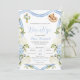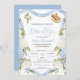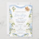 Bleu floral garçon baptême invitation en espagnol, invitación de Bautizo para niño con flores verdes