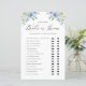 Devine qui ? Mariée ou Groom ? Ajoutez ce baby shower botanique He Said, She Said carte de jeu à votre événement. Il présente des illustrations aquarelle de roses blancs et bleus et des pivoines avec un accent verdoyant. Personnalisez en ajoutant des textes. Cette carte de mariée ou de mariée fleurie est parfaite pour les douches nuptiales d'hiver.