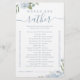 Amusez vos invités avec ce jeu de douche plutôt nuptiale, dispose d'aquarelle romantique floral dans bleu poussiéreux et vert sauge, et élégant script moderne, simple et propre, idéal pour la douche nuptiale boho moderne, des fêtes de mariage de jardin botanique. Voir tous les jeux de douche nuptiale en collection.