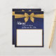 Arrière - plan bleu foncé superbe attaché avec une image d'arc or. La papeterie est imprimée, pas de ruban réel. Personnalisez notre superbe papeterie avec vos détails de l'événement facilement et rapidement, appuyez simplement sur le bouton customiser. La coordination à l'envers est incluse. Les articles correspondants pour compléter votre collection d'événements sont disponibles dans notre boutique Zazzle!