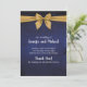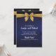 Arrière - plan bleu foncé superbe attaché avec une image d'arc or. La papeterie est imprimée, pas de ruban réel. Personnalisez notre superbe papeterie avec vos détails de l'événement facilement et rapidement, appuyez simplement sur le bouton customiser. La coordination à l'envers est incluse. Les articles correspondants pour compléter votre collection d'événements sont disponibles dans notre boutique Zazzle!