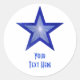 Bleu foncé Star 'Your Text' rond autocollant blanc