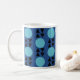 Motif de mug moderne abstrait géométrique bleu. Style moderne, design abstrait seventies pour cette tasse colorée. Points, cercles, triangles et formes géométriques simples. Idée cadeau bleu moderne pour les anniversaires, la journée de la mère, noël, ou pour la décoration de cuisine. Simple tasse bleue pour femmes, mère, femmes, amis, filles