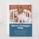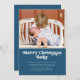 Annoncez l'arrivée de votre nouveau petit tout en répandant un peu de joie de Noël avec ce faire-part de naissance de vacances. Il comporte les mots "Joyeux bébé de Noël" en blanc sur un arrière - plan bleu. Il a de l'espace pour une photo à l'avant comme à l'arrière.