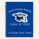 Personnalisez trois lignes de texte blanc sur ce carnet de classe supérieure de 2025 bleu foncé. Que votre enfant débute ses études secondaires, secondaires, collégiales ou que vous souhaitiez ajouter le nom de l'école et d'autres expressions personnalisées, vous pouvez le faire au-dessus et au-dessous du casquette bleu et du goûsel.