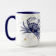 Pour notre collection monochrome de zodiaque nous avons créé cette belle conception profonde faite sur commande un-de-un-aimable personnalisée de tasse d'astrologie de Cancer de zodiaque de feuille d'or de bleu marine et de faux. La tasse de Cancer comporte notre propre illustration astrologique détaillée de zodiaque tiré par la main de Cancer interprétée par original dans une couleur profonde de bleu marine. Le texte élégant de zodiaque de Cancer est incorporé avec l'illustration de Cancer avec des embellissements d'étoile de feuille d'or de faux pour une étincelle supplémentaire. La conception de tasse de Cancer est audacieuse, forte et moderne, créant un regard très élégant. Ces tasses sont personnalisables avec la date de naissance du destinataire. Montrez à la personne spéciale dans votre vie votre amour en leur envoyant une tasse personnalisée unique de naissance de Cancer de zodiaque.