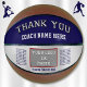 Bleu marine (changer toutes les couleurs marine) et Équipe Photo ou Logo Argent (Supprimer pour exposer le design), Basketball personnalisé pour l'entraîneur. Le basketball personnalisé de taille réelle est affiché ou choisissez le basketball Mini personnalisé. Tapez le nom de l'entraîneur, TOUS LES NOMS DES JOUEURS, ÉQUIPE, ANNÉE ou VOTRE TEXTE ou Supprimer. Ces basketballs personnalisables, à mon avis, sont superbes, des idées de cadeaux pour l'entraîneur de basketball. APPELER la designer Linda : 239-949-9090 ET pour de l'AIDE ou je peux REDESSINER le basketball avant votre commande. Toutes les combinaisons de couleurs. Je peux également concevoir d'autres cadeaux personnalisés pour l'entraîneur de basketball, des cadeaux pour les joueurs de basketball, les seniors et des fournitures pour les fêtes de basketball. Service de conception personnalisée gratuit. Considérez ces quelques-uns des meilleurs cadeaux d'appréciation pour l'entraîneur de basketball.