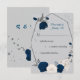fleurs bleu marine et blanc sur cadre géométrique gris carte rsvp
