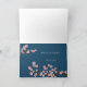 Les belles fleurs de cerisier et une paire de perruches sur un arrière - plan de marine ornent cette suite simple et élégante de faire-part de mariage. Cette conception est parfaite pour des mariages orientés asiatiques de jardin de soirée.