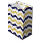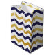 Bleu marine mignon et d'amusement et sac de cadeau de motif de Chevron d'or. Perfectionnez pour n'importe quel anniversaire ou baby shower. Customisez avec une photo.