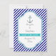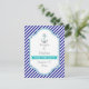 Bleu marine, bandes blanches et annonce de mariage nautique avec ancre "Save the Date". Un design élégant à motif rayé avec des bandes diagonales bleues marine et blanches, une ancre grise avec un cœur turquoise et une corde, et votre texte dans un cadre avec une bannière aqua. Moderne tout en ayant un aspect vintage dans un sens. Vous pouvez changer la couleur de fond et de texte en choisissant parmi plus de 200 couleurs du nuancier de Zazzle. Ce design élégant est un modèle entièrement personnalisable et fait partie d'un ensemble de mariage parfait pour un mariage estival nautique ou de plage.